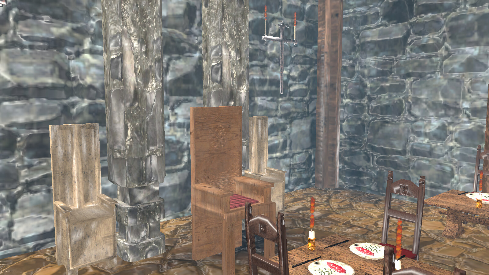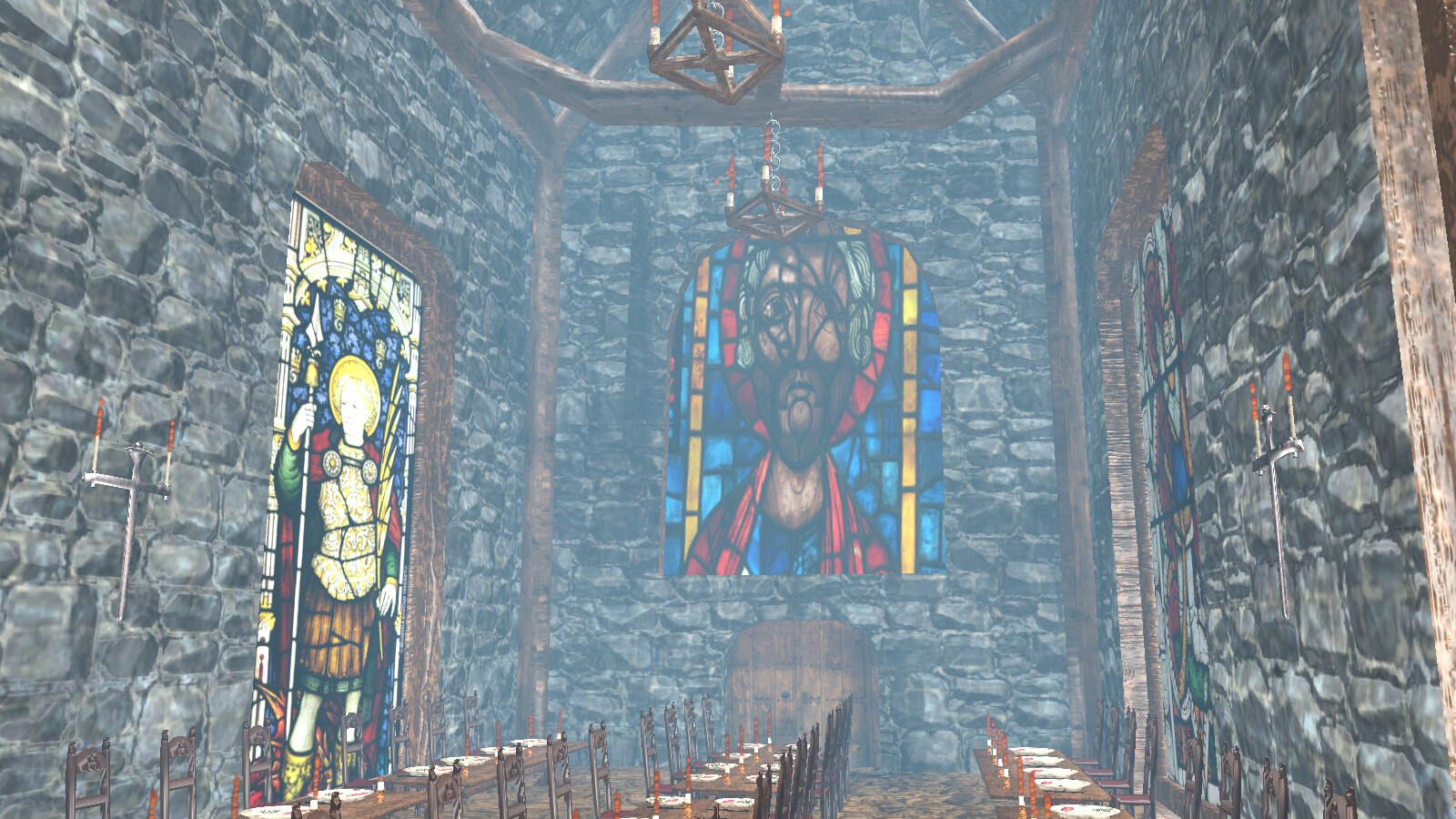 This scene is historically informative because it accurately shows representations of historical furniture and utensils based of references. The windows are made to be accurate to real stain glass windows because I used photos of stain glass windows from real world historical buildings as textures for the windows. Most major castles at the time would have had a hall like this to host functions and events.
